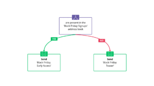 Example: Send early access offers to guests who have indicated preferences for a specific topic, while other marketable contacts will be funnelled into an alternate campaign.