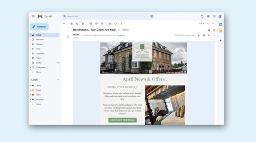 By creating a segment based on engagement with the initial email, The Feversham Arms Hotel & Verbena Spa was able to execute a highly targeted campaign with this email and reach guests who had engaged and purchased previously. 40% of the revenue generated from this campaign came from that second email!